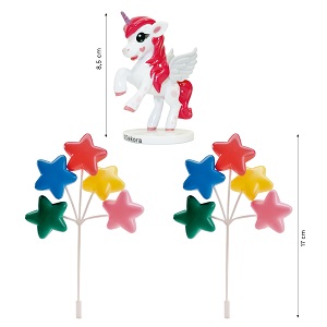 Dekorácia na tortu s motívom Jednorožec je ideálnym doplnkom pri zdobení tôrt. Nejedlé dekorácie sú vhodným doplnkom jedlých oplátok a sú opakovane použiteľné.