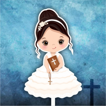 Tortadísz fogadás Lány könyvvel és fehér rózsafüzérrel