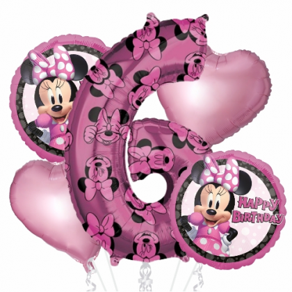 Minnie Mouse lufi csokor 5 db fólia lufiból gyermek születésnapi bulira - ünneplésre.